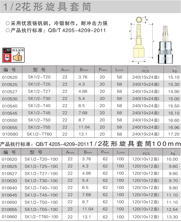>  SK1/2-T40 捷科 花型旋具套筒