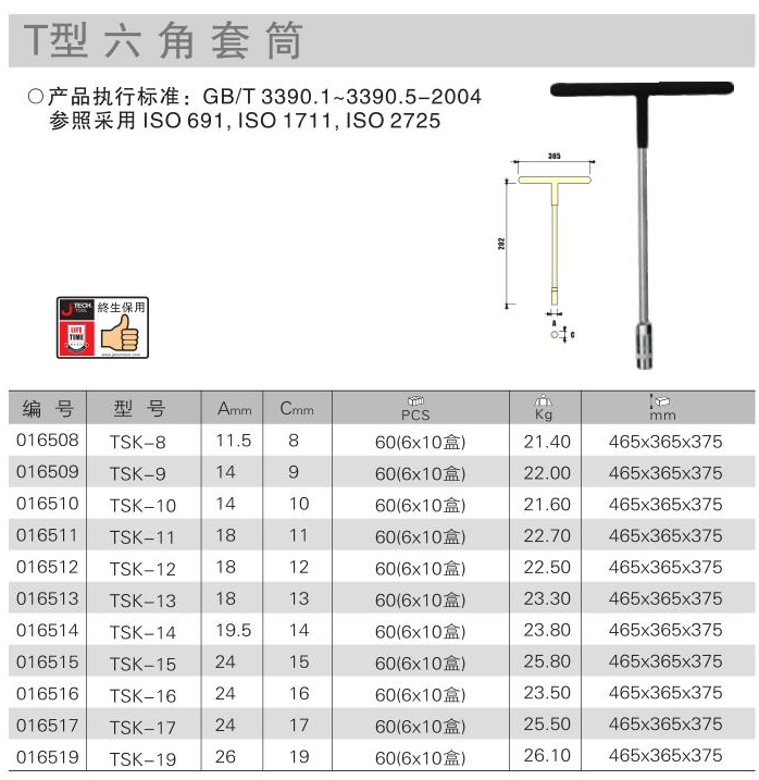 >  TSK-8 8mm 捷科 T型柄六角套筒