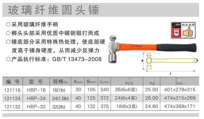 >  HBP-24 (1.5P)捷科 纤维柄圆头锤