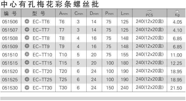 >  EC-TT10 捷科 中心带孔梅花头螺丝批
