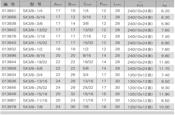>  SK3/8-15/32 捷科 3/8系列六角英制套筒