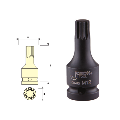 >  FK1/2-M12 捷科 1/2英寸系列风动十二角旋具短套筒