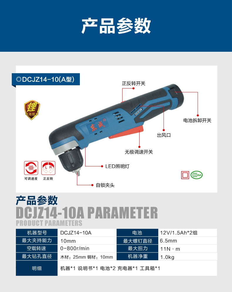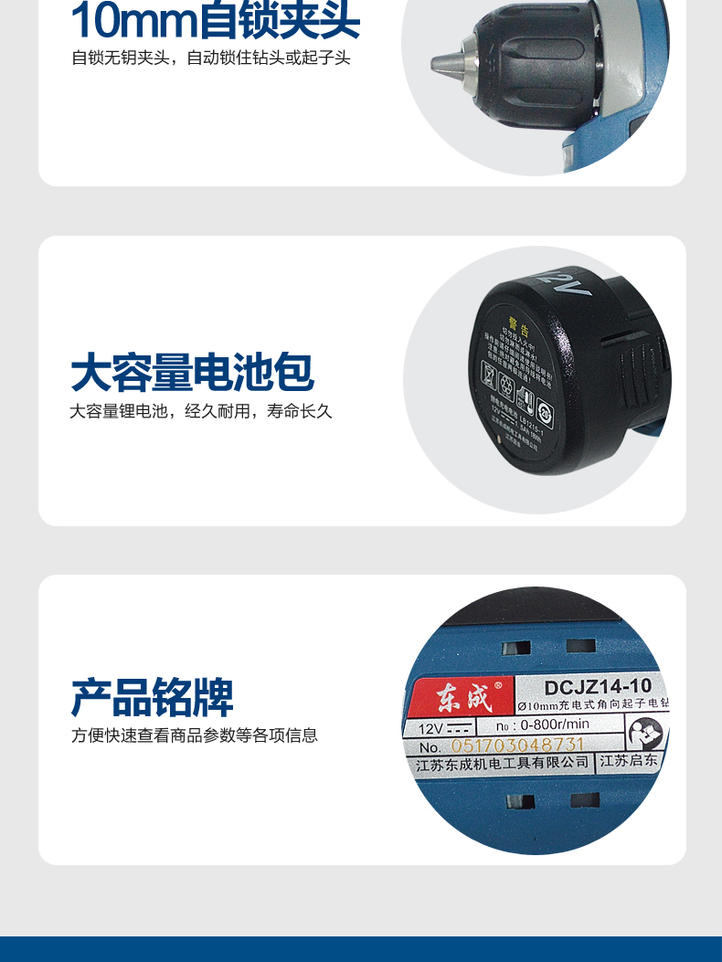 • 商品名称:DCJZ14-10E 东成 充电式角向起子电钻