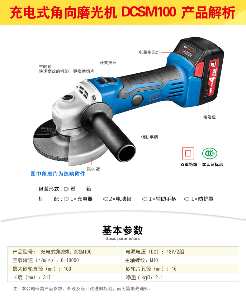 • 商品名称:DCSM100E 东成 充电式角向磨光机