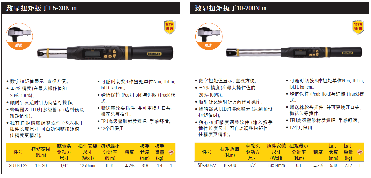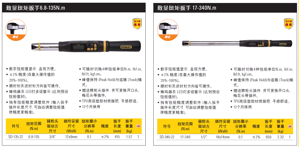 >  史丹利 数显扭矩扳手17-340N.m
