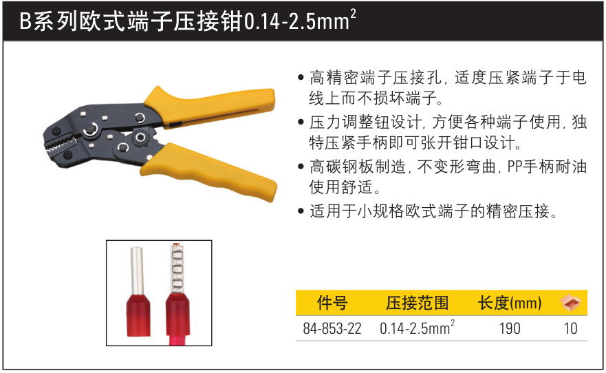 >  史丹利 B系列欧式端子压接钳0.14-2.5mm2