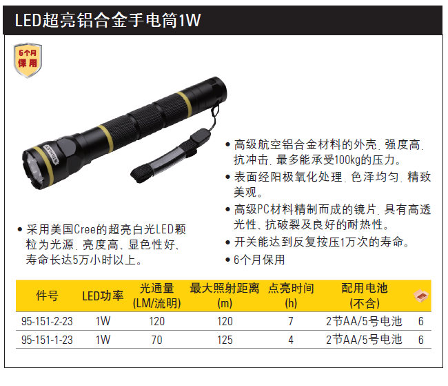 史丹利 超亮LED通用手电筒1W-2AA