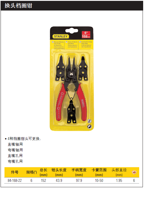 >  史丹利 换头档圈钳6英寸
