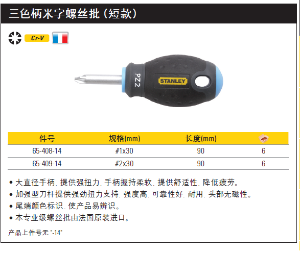>  史丹利 三色柄米字螺丝批PZ2x30mm