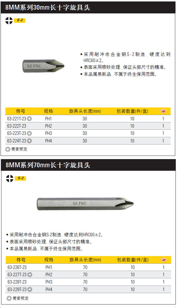 >  史丹利 8mm系列十字旋具头PH2x30mm(x10)