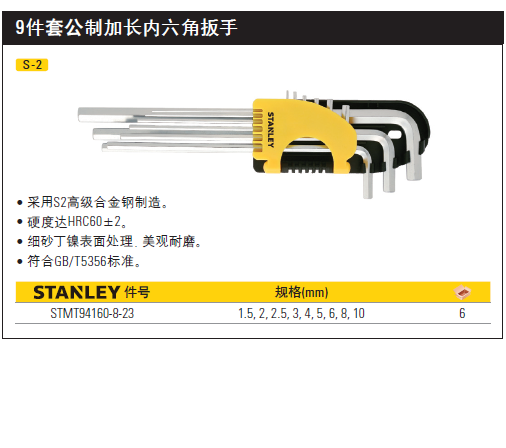 >  史丹利 9件套公制加长内六角扳手1.5-10mm