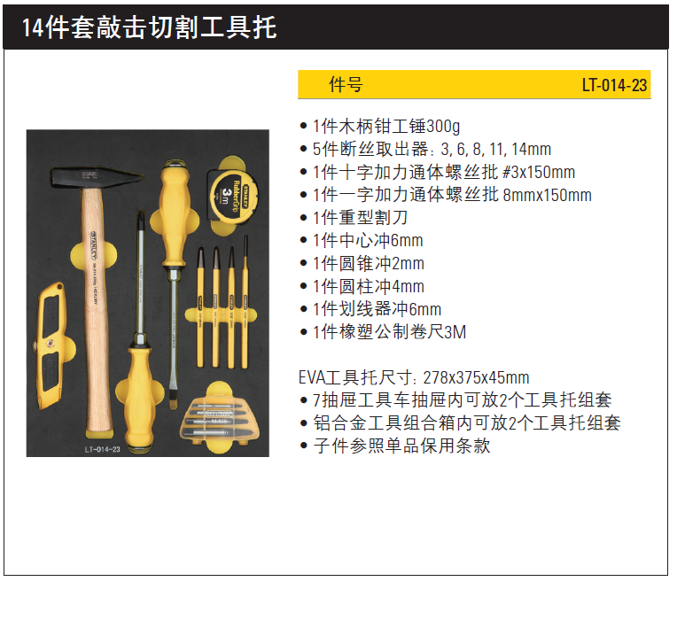 >  史丹利 14件套敲击切割工具托