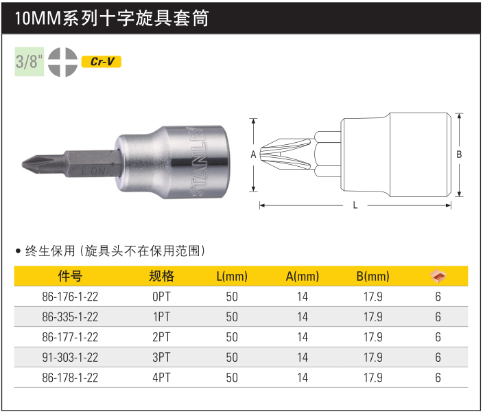 >  史丹利 10MM系列十字旋具套筒4PT